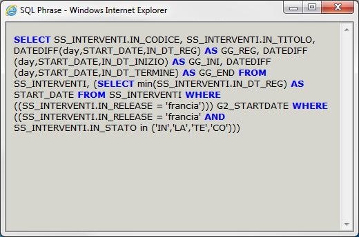 Visualizza la frase SQL.