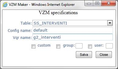 Apre una nuova finestra che permette la creazione di una configurazione VZM che utilizza la query aperta al momento per l'estrazione dei dati.