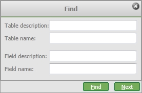 In entrambi i casi, la ricerca puņ essere condotta utilizzando come parametro di ricerca la descrizione, oppure il nome fisico assegnato al campo o alla tabella.