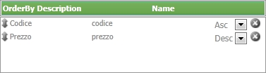 È possibile modificare l'ordine di presentazione dei campi nella listbox tramite drag&drop sfruttando l'immagine che compare a sinistra del nome del campo nella lista. Per eliminare un campo dalla lista è sufficiente cliccare sulla "X".