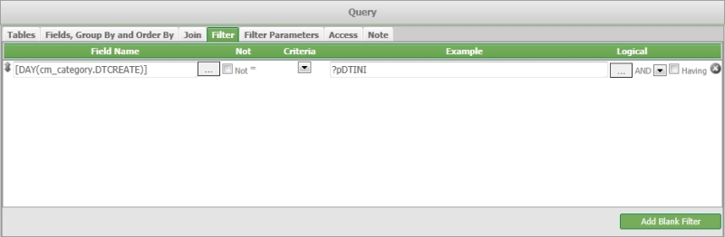Tipicamente queste funzioni possono essere utilizzate all'interno della zona 'Fields, Group By and Order By/name', nella zona 'Join/Expression' dove vengono specificate le condizioni di join tra tabelle, oppure all'interno della zona 'Filter/Field Name' dove viene specificato il campo di confronto per l'estrazione dei dati.