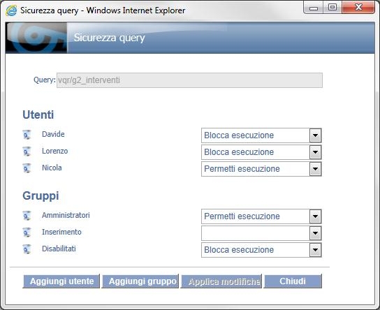 A questo punto si settano i diritti di accesso al componente per utente o gruppo di utenza.
