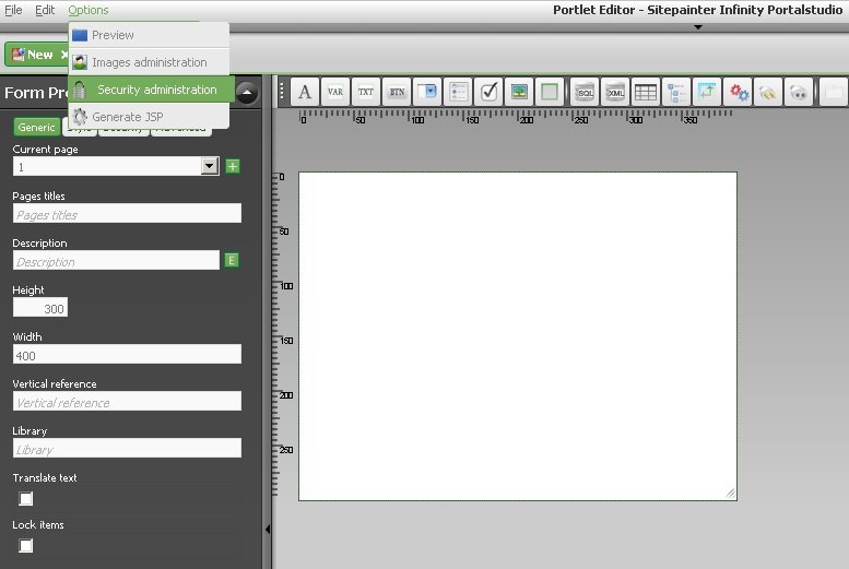 La logica di utilizzo per impostare le sicurezze segue da vicino quella di SITEPAINTER INFINITY: si apre il componente da gestire e lancia il tool dalla voce 'Security administration' del menu 'Option'.