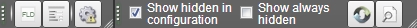 Se viene selezionato il checkbox "Show hidden in configuration", nel prototipo della maschera, vengono disegnati anche i campi con opzione "Hidden in configuration". Questi campi si possono distinguere dagli altri dal colore grigio e stile italico delle etichette.