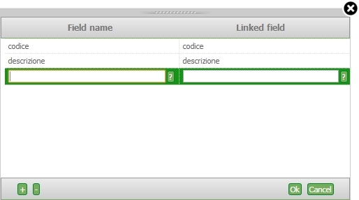 Cliccando nel punto interrogativo presente in questa maschera è possibile scegliere il campo della maschera nel quale riportare il valore del campo della tabella associato.