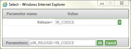In valore_parametro è necessario specificare il nome di un campo, il quale deve avere come "Initial value" (fisso) il valore che si vuole dare al parametro. Le uguaglianze parametro/valore devono essere separate da virgola.