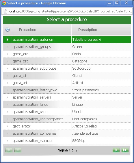 Mediante questo bottone, posto vicino alla zona 'Tables', č possibile selezionare un Business Object che puņ essere utilizzato come nuova tabella.